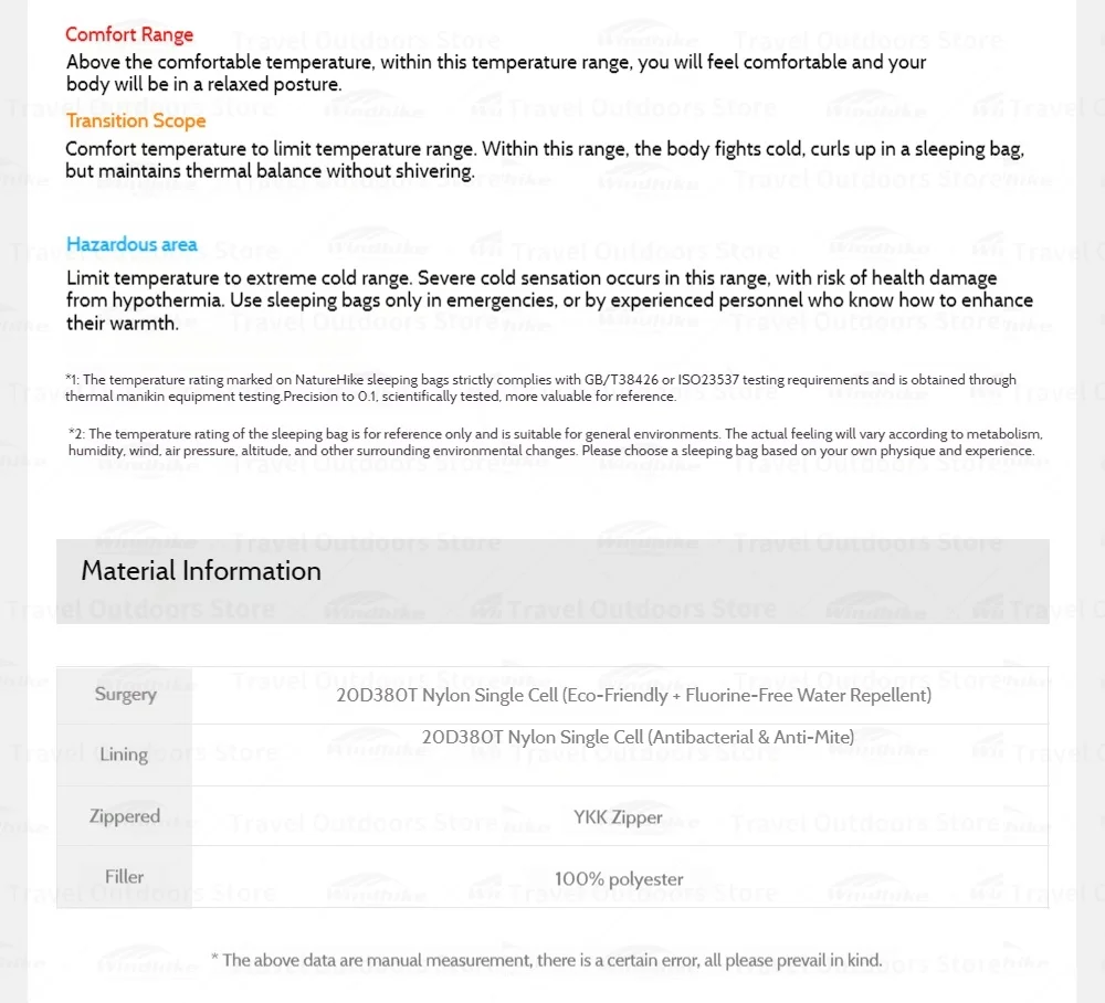 Size:M:75*190cm,L:80*205cm,XL:85*220cm